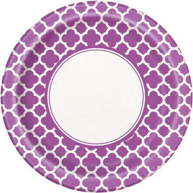These Pretty Purple Quatrefoil Dinner Plates are perfect for parties or other special celebrations! Includes 8 paper dinner plates that each measure 9" in diameter.